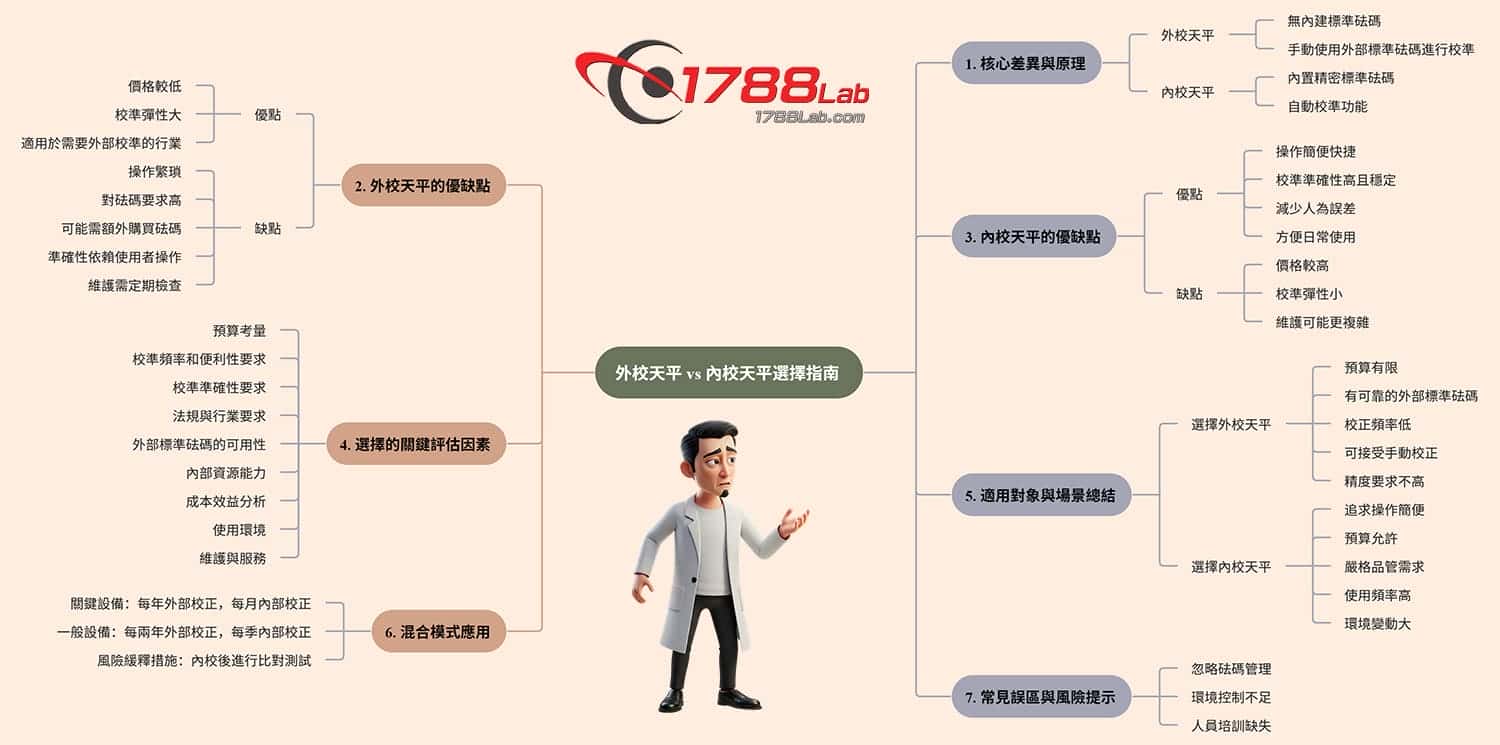 - 預算考量:如果預算有限,外校天平通常是更經濟的選擇. 內校天平初期投資較高.