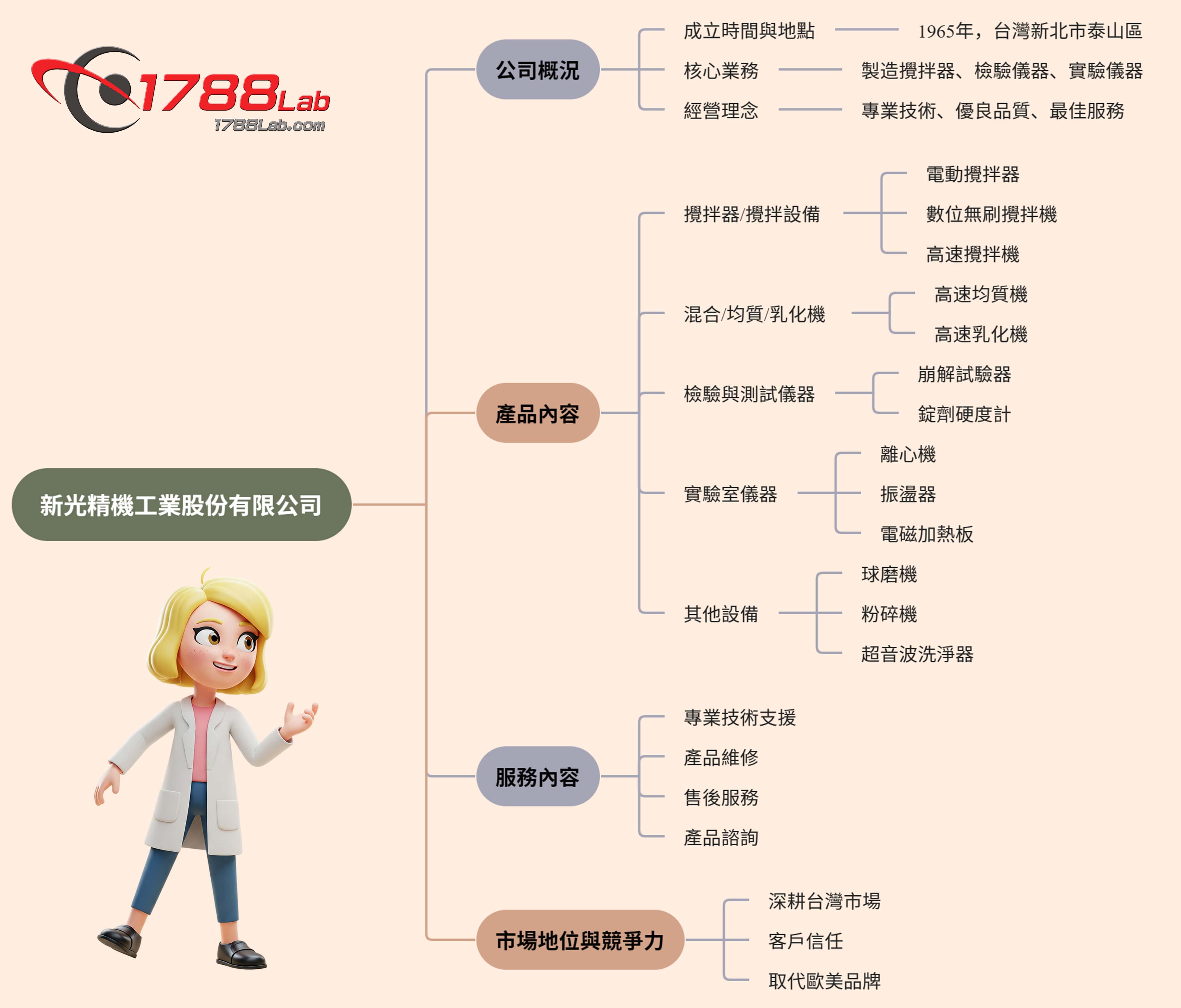 • 核心業務:新光精機是一家專業製造各種攪拌器、檢驗儀器與實驗儀器的廠商。