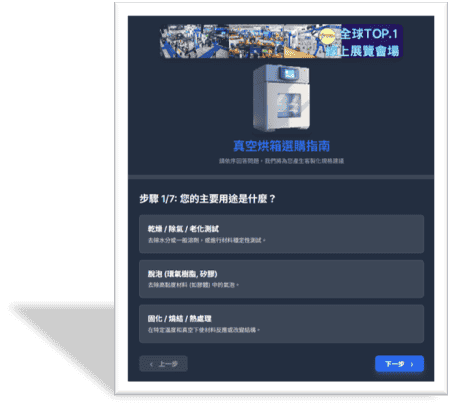 只需點選需要的找尋的儀器,我們的動態指南幫您快速篩選!!