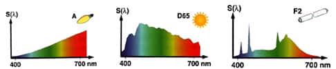 (b)C光源(鎢絲燈經濾片所得之光),近似北方仰角45度白雲呈現之光色,由於缺少紫外線之定義,現已逐漸被D65所取代。