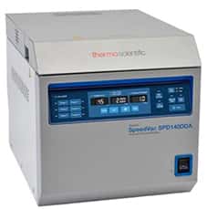 SpeedVac SPD140DDA 是一款中等容量的真空濃縮儀,可與多種溶劑配合使用,並能耐受三氟乙酸 (TFA)、二甲基亞砜 (DSMO) 以及其他組合化學應用中常用的腐蝕性溶劑。